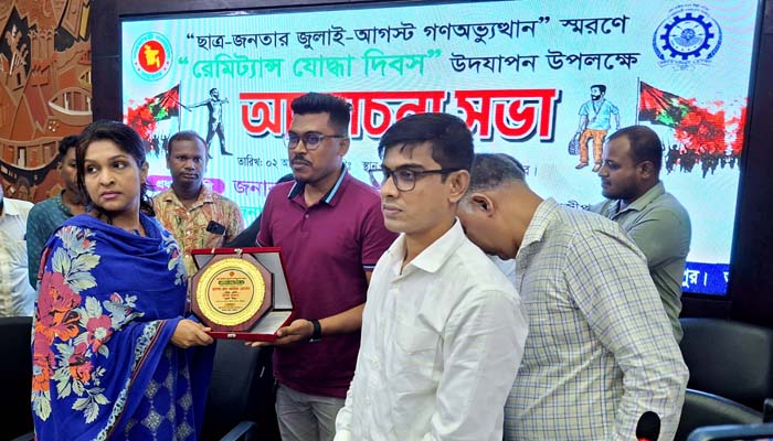 পরে গাজীপুরের দুইজন রেমিট্যান্স যোদ্ধা মাসুম খান ও আরিফুল ইসলামের পরিবারের সদস্যের হাতে সম্মননা ক্রেস্ট প্রদান করা হয়।